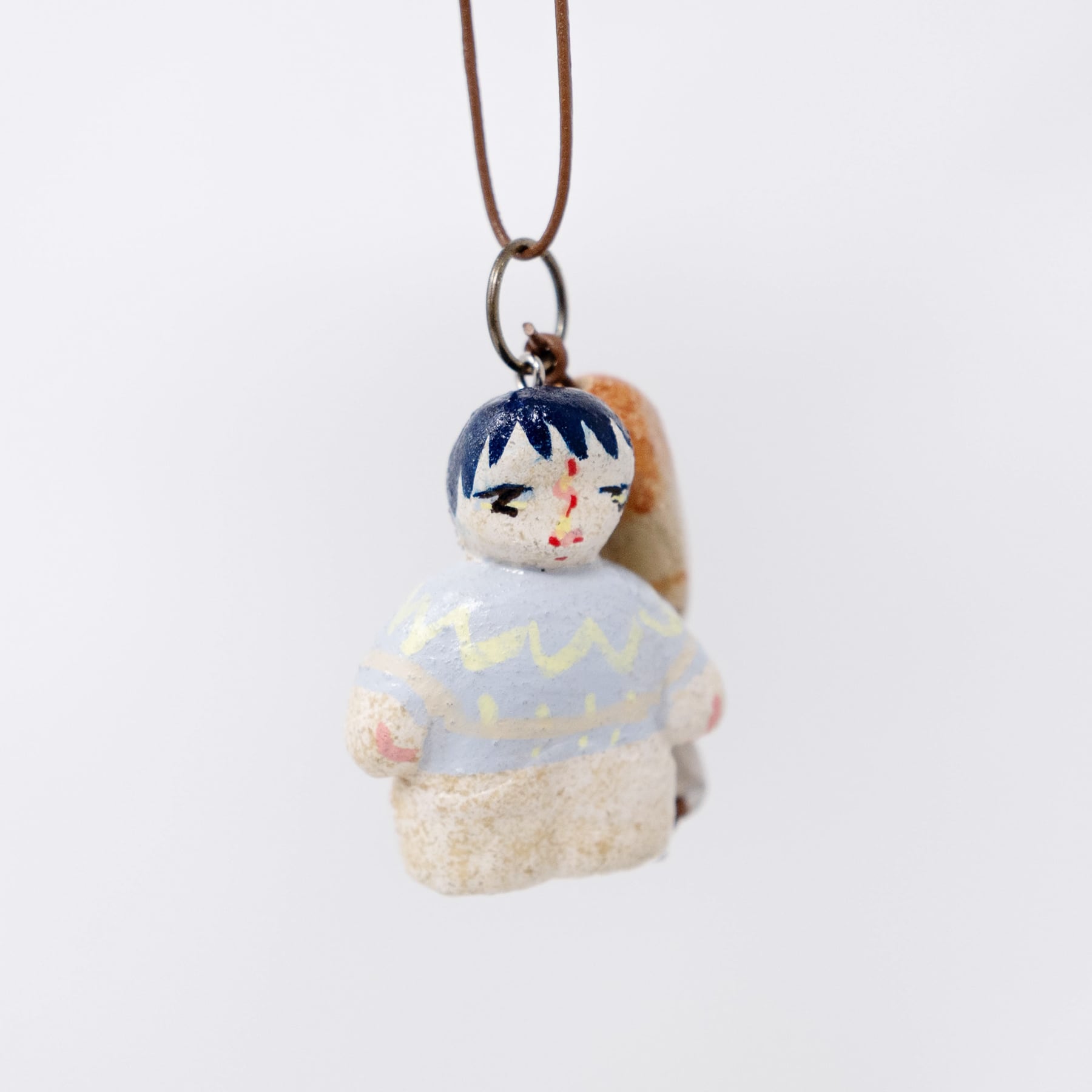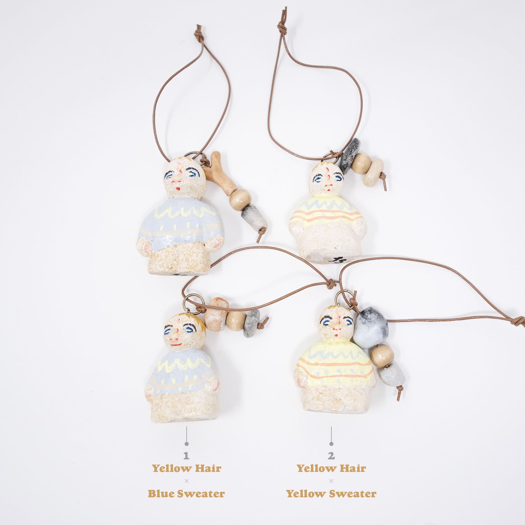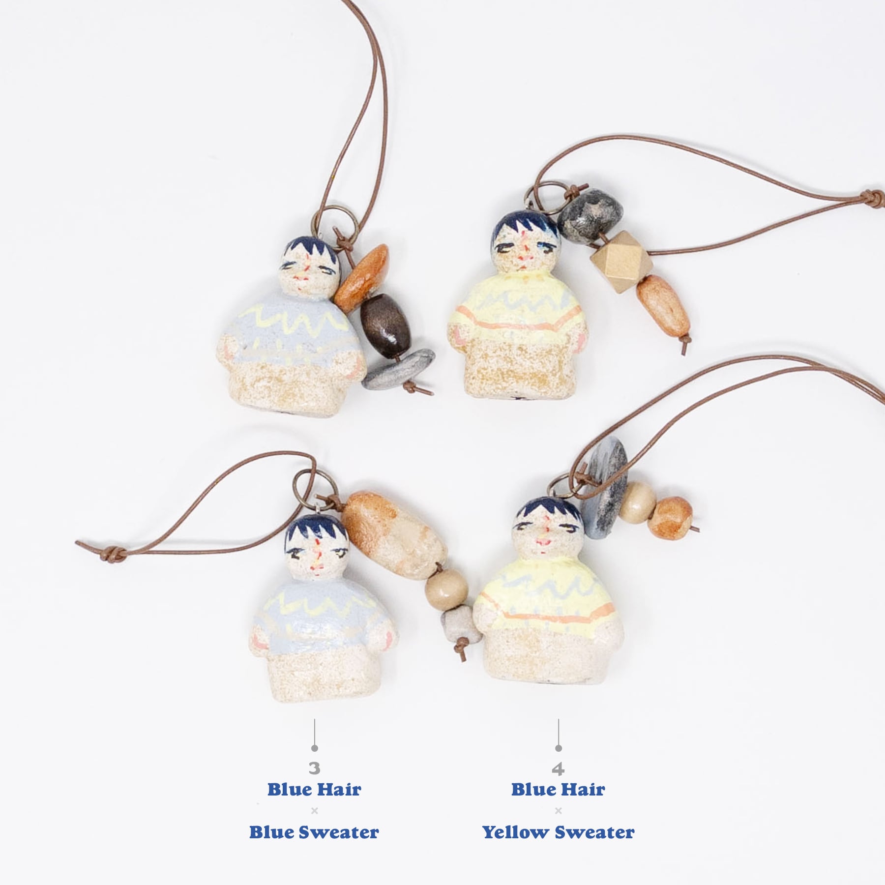 オーブン陶土で作った人形と石型のビーズをあわせたチャームです。